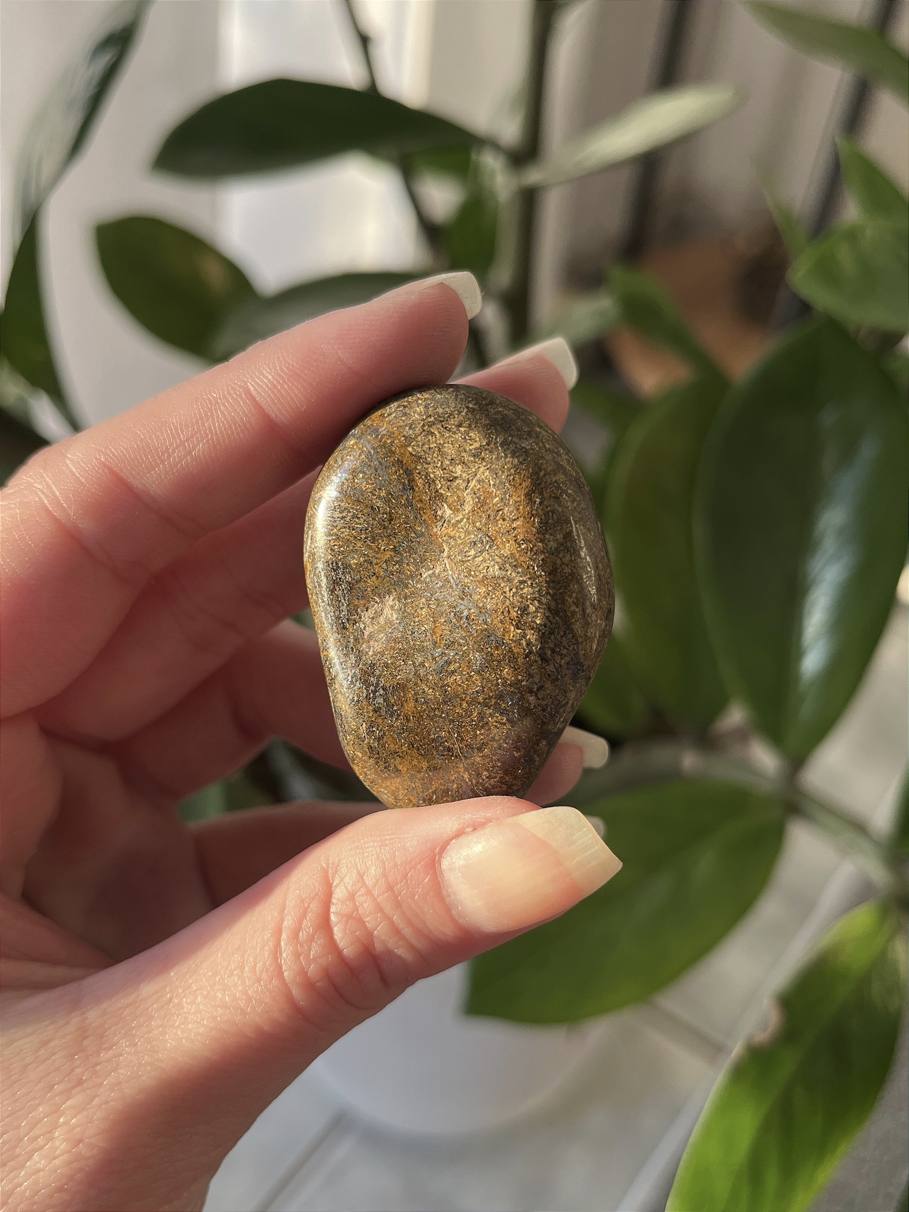A Bronzita é uma pedra de aterramento e firmeza, conhecida por sua vibração acolhedora e protetora. Ela atua como um escudo energético, ajudando a restaurar o equilíbrio interior e a fortalecer a mente diante das adversidades. Perfeita para momentos de tensão, ela oferece conforto, coragem e serenidade. 🌍✨
